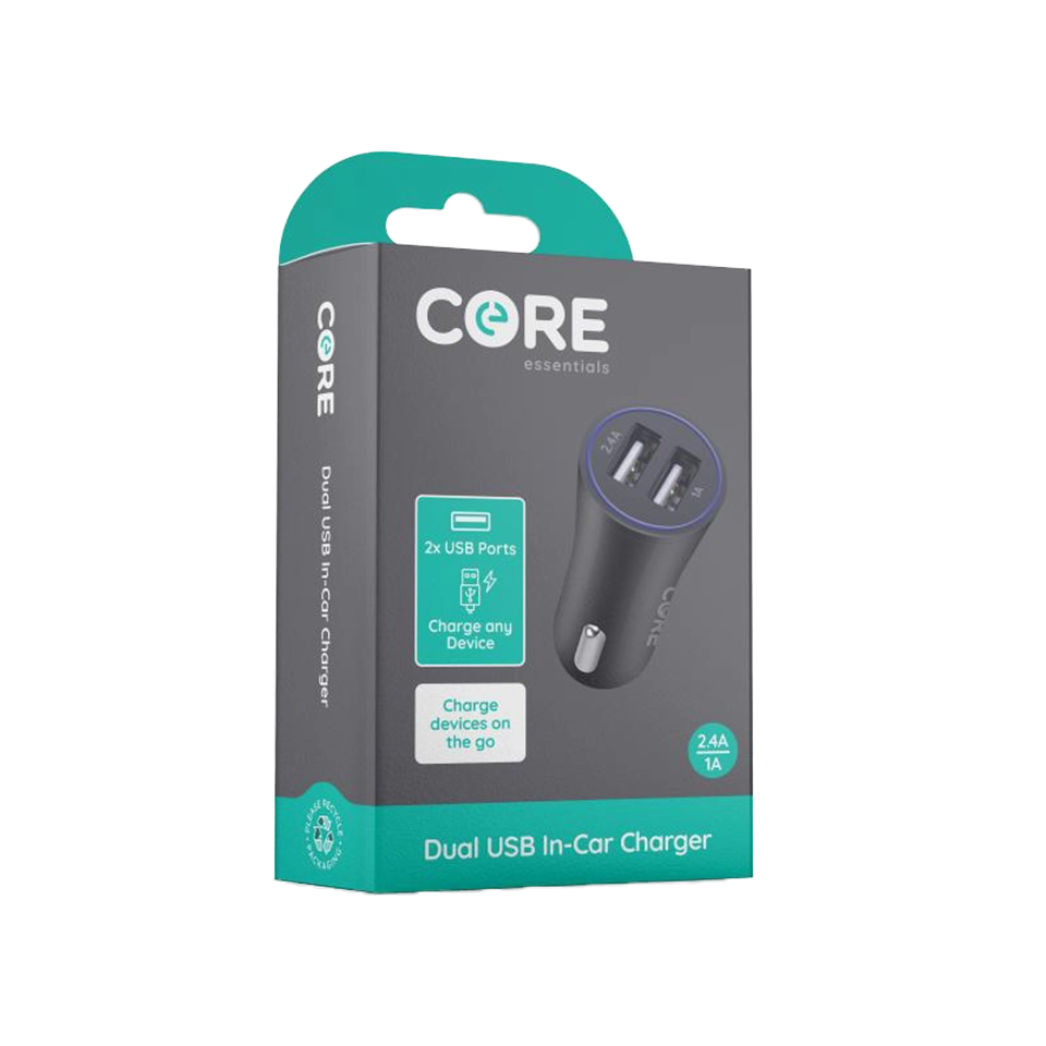 Experience reliable and fast charging on-the-go with the CORE Dual USB Car Charger Black. Stay connected and keep your devices powered throughout your journey.